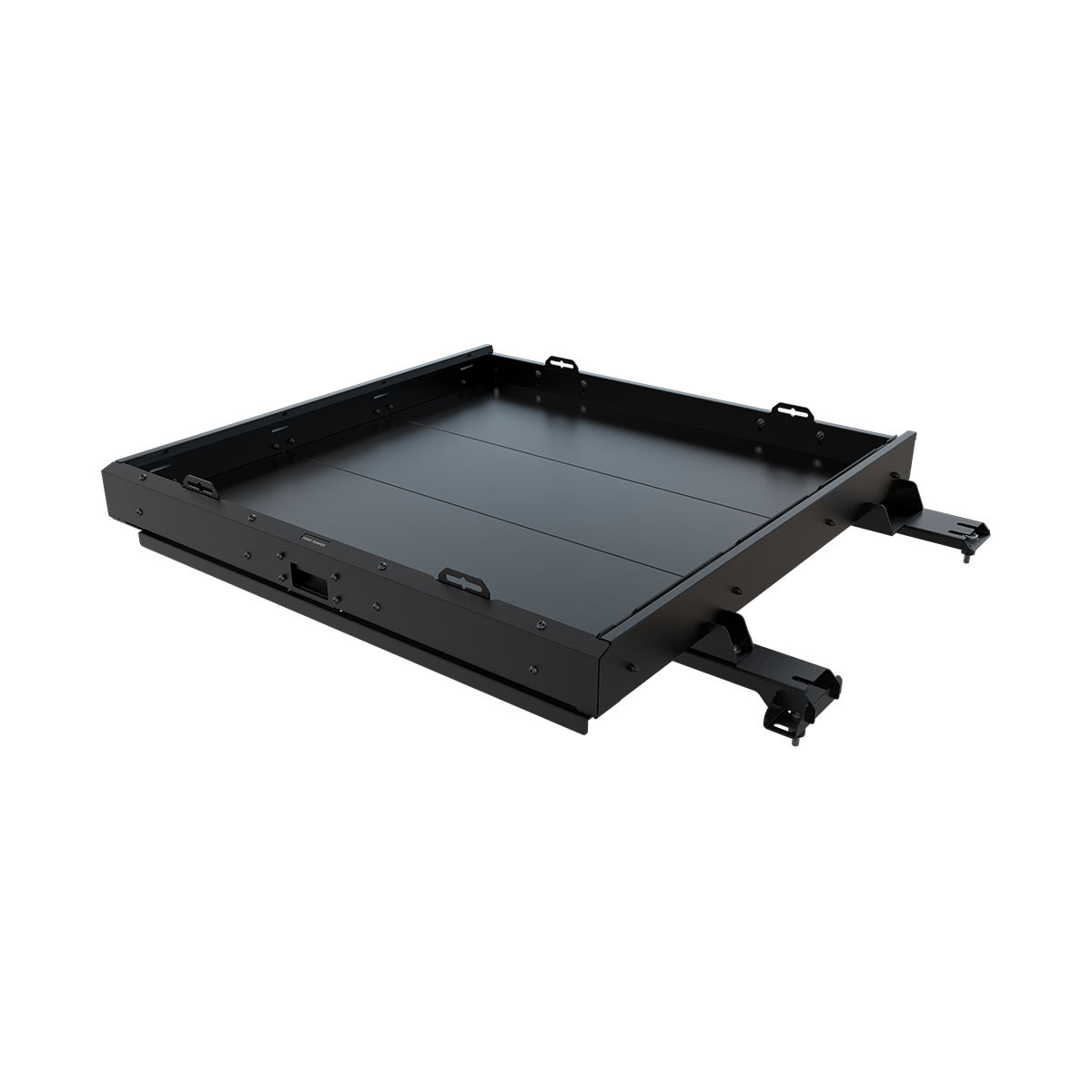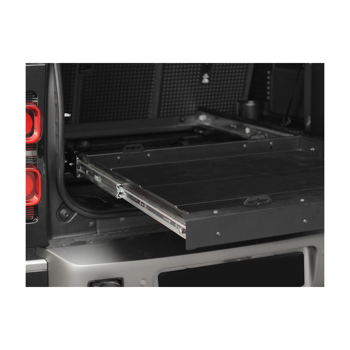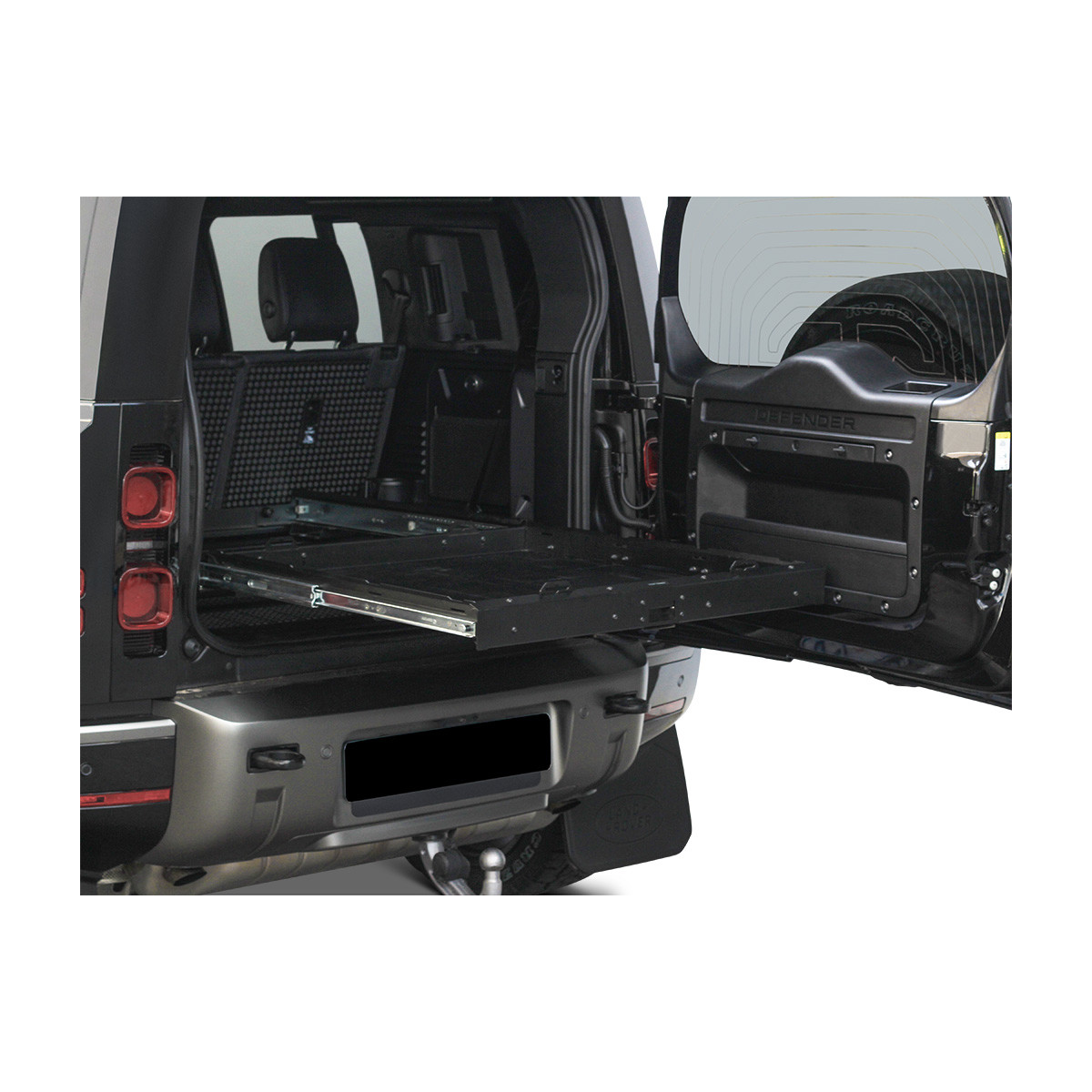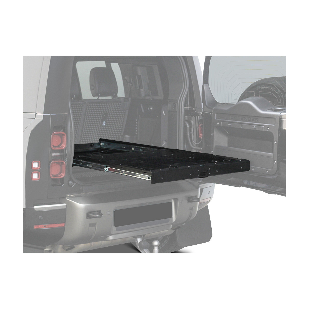 Améliorez votre jeu de stockage d'aventure avec le Plateau coulissant pour un Land Rover New Defender 110 (L663). Combinez tout ce que votre voyage exige sur ce tiroir plat, même si c'est un réfrigérateur, des chaises et des boîtes de rangement, tout à la fois. Et lorsque l'aventure est terminée, vous pouvez utiliser la glissière pour accéder facilement aux courses et autres objets du quotidien.