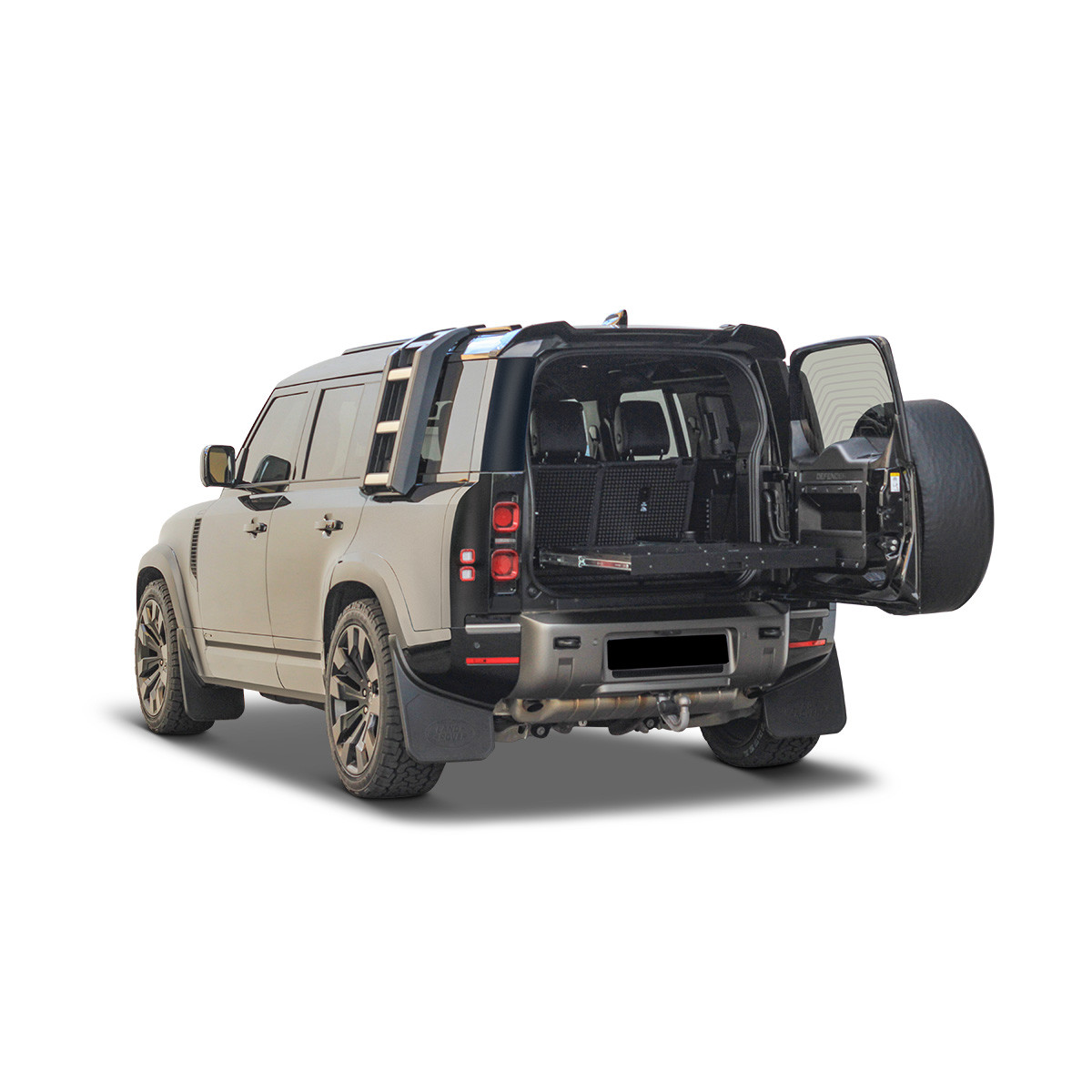 Découvrez une solution de rangement révolutionnaire avec notre Plateau Coulissant "Adventure Storage" conçu spécialement pour le New Defender 110 (L663). Facilitez l'accès à votre équipement, que ce soit un réfrigérateur, des chaises ou des boîtes de rangement, grâce à ce tiroir robuste et facilement accessible. Parfait pour les aventuriers et également pratique pour les courses quotidiennes, ce plateau utilise les points d'ancrage existants du véhicule pour une installation sans perçage. Avec sa capacité de charge impressionnante de 113 kg et son revêtement en poudre noire durable, il est construit pour résister aux conditions les plus exigeantes.