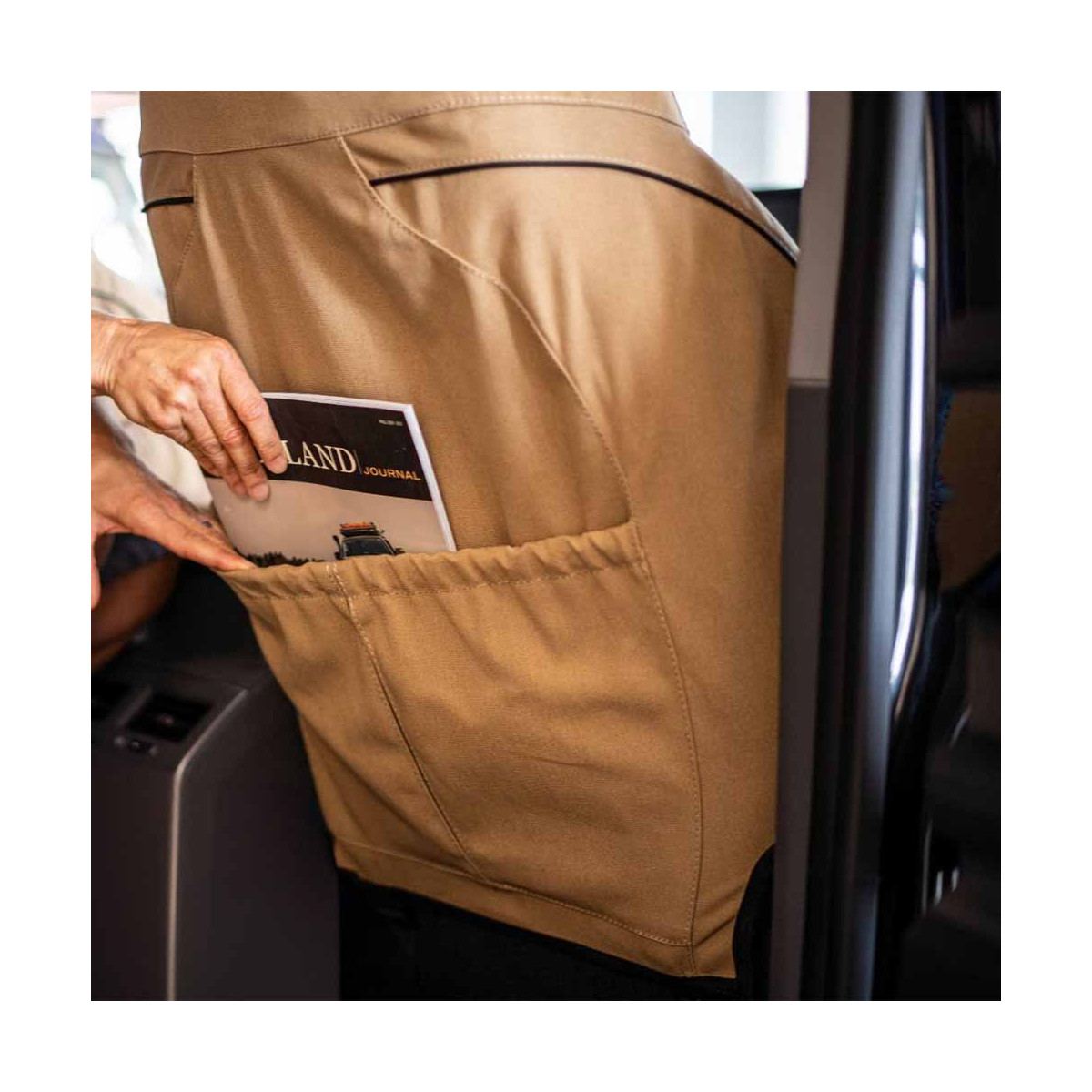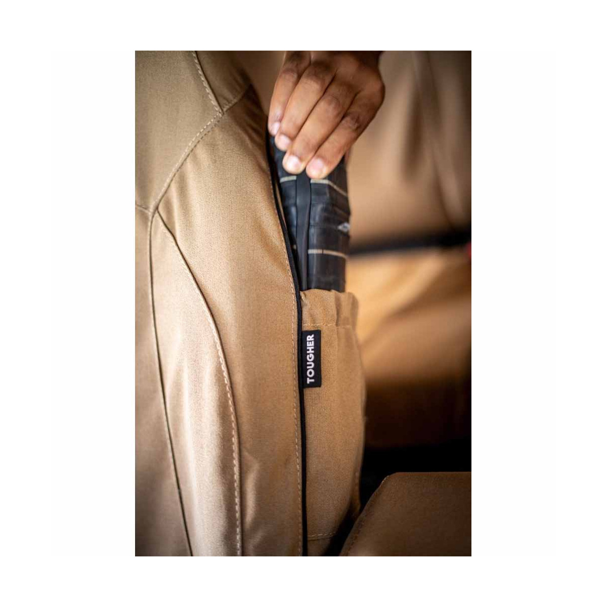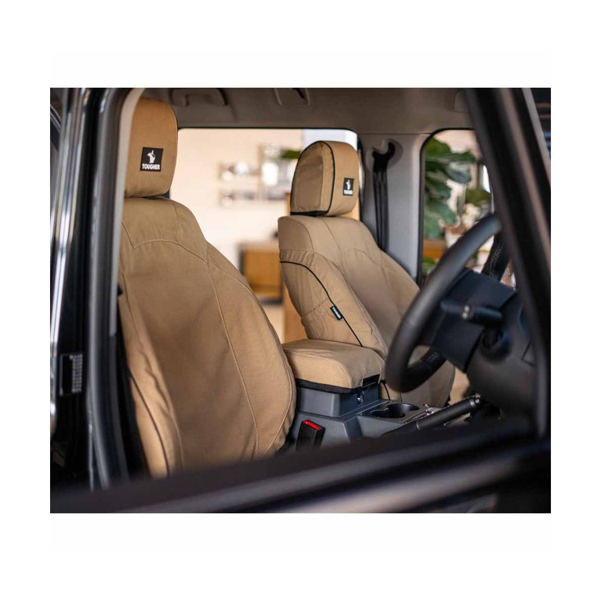 Les housses de sièges avant Tougher sont des protections de luxe, conçues spécifiquement pour les sièges avant de votre Ineos Grenadier. Fabriquées en polycoton de haute qualité, ces housses allient durabilité, confort et respirabilité, même dans les conditions les plus extrêmes. Compatibles avec les airbags, elles sont disponibles en couleur Charcoal. La conception sur mesure assure un ajustement parfait et une apparence élégante, tout en offrant une protection exceptionnelle contre l'usure et les salissures. Le set comprend des housses pour les sièges avant, les appuie-têtes et la console centrale, ainsi que plusieurs poches de rangement pratiques.
