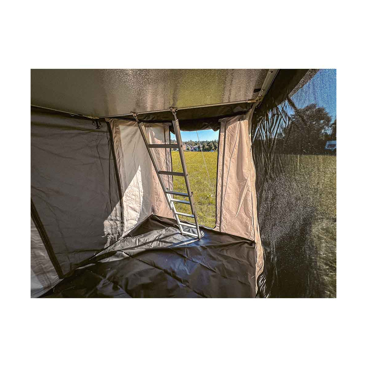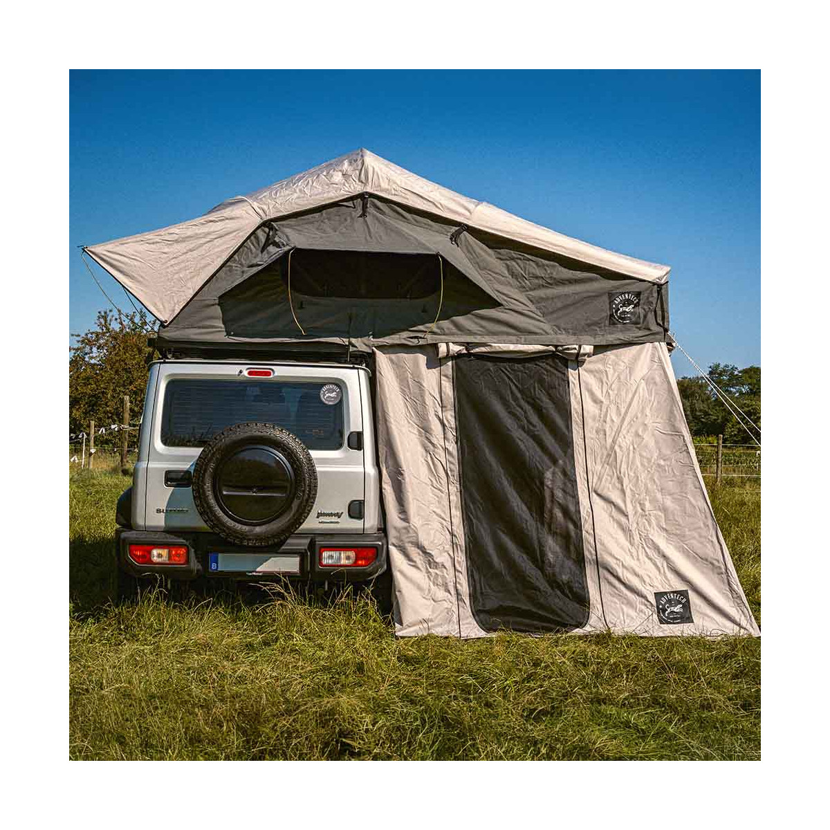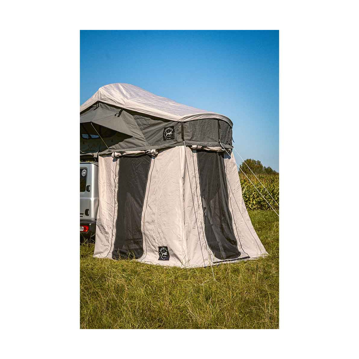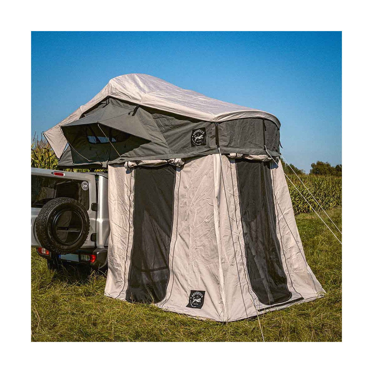 L'annexe pour Tente de Toit Adventech M140 Tourer est le compagnon parfait pour ceux qui souhaitent étendre leur espace de vie en plein air. Conçue pour s’adapter parfaitement sous la tente de toit Adventech M140, elle offre un espace clos supplémentaire, idéal pour se protéger des intempéries, du vent et des insectes. Grâce à sa hauteur ajustable de H175-205cm, cette annexe s’adapte facilement à différents véhicules et configurations, permettant une installation et un démontage rapides. Le sol en PVC résistant assure que vos affaires restent au sec, tandis que les murs renforcés créent un espace confortable pour manger, se détendre ou stocker vos équipements en toute sécurité.