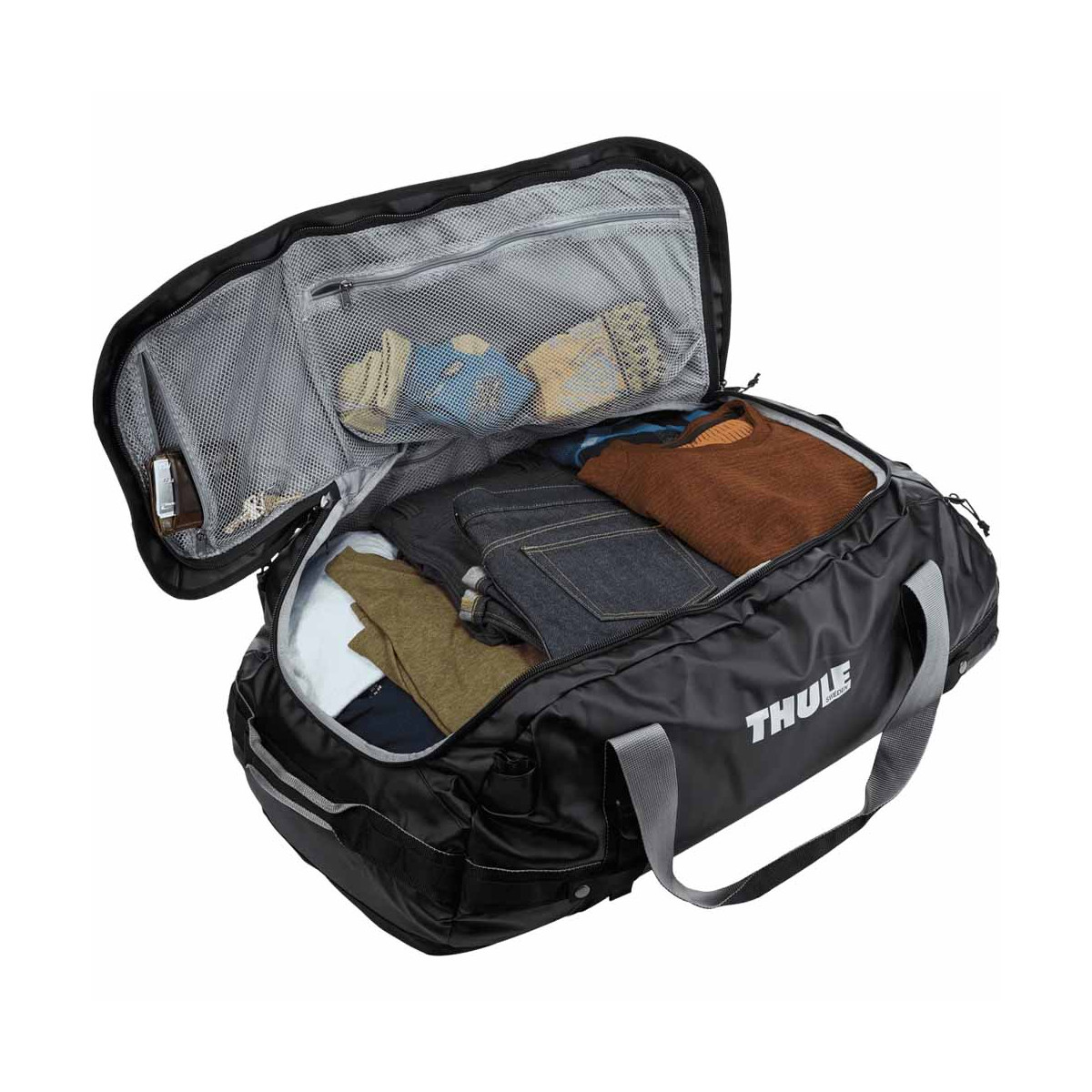 Thule Chasm 90L: sac robuste, résistant aux intempéries, convertible en sac à dos.