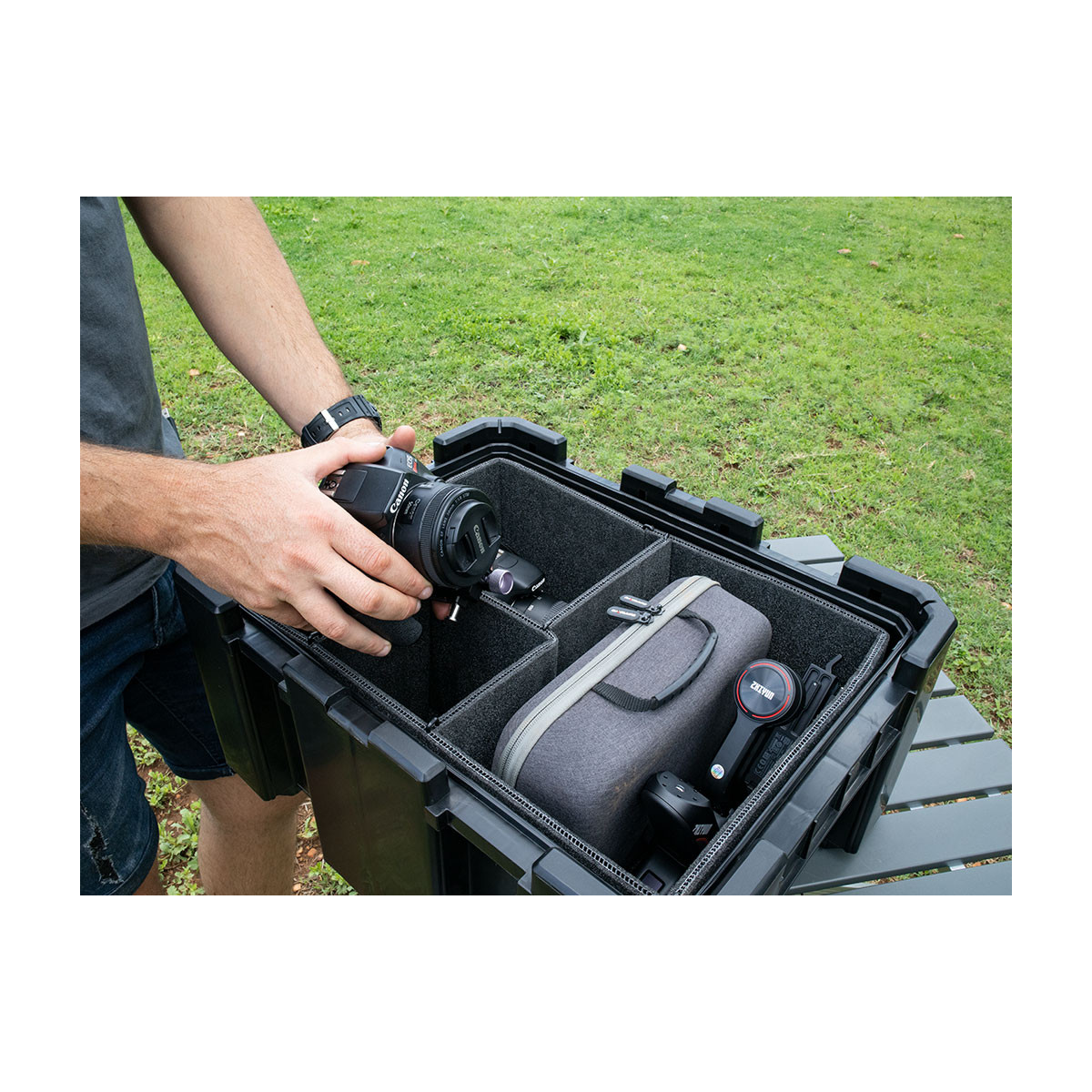 Les solutions de rangement Front Runner peuvent être utilisées pour à peu près tout lors de vos aventures. L'ajout de ces séparateurs en mousse pour boîtes de rangement offre une protection et une organisation supplémentaires pour l'équipement photographique, les ustensiles de cuisine et autres articles fragiles.