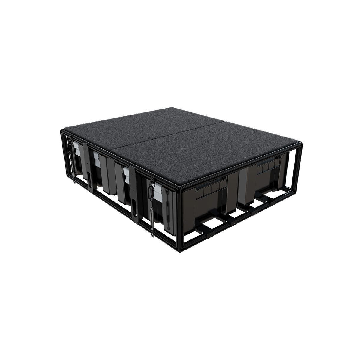 Ce kit inclut tout le nécessaire pour une installation rapide et facile : unité de rangement, plateau supérieur, boîtes Wolf Pack Pro, supports et matériel d'installation avec instructions détaillées. Les boîtes Wolf Pack Pro sont parfaites pour ranger divers équipements tels que des fournitures de cuisine, outils, matériel photo et vêtements. Ce système modulaire empêche les vibrations et mouvements excessifs grâce à ses ressorts intégrés, assurant un rangement sans cliquetis.