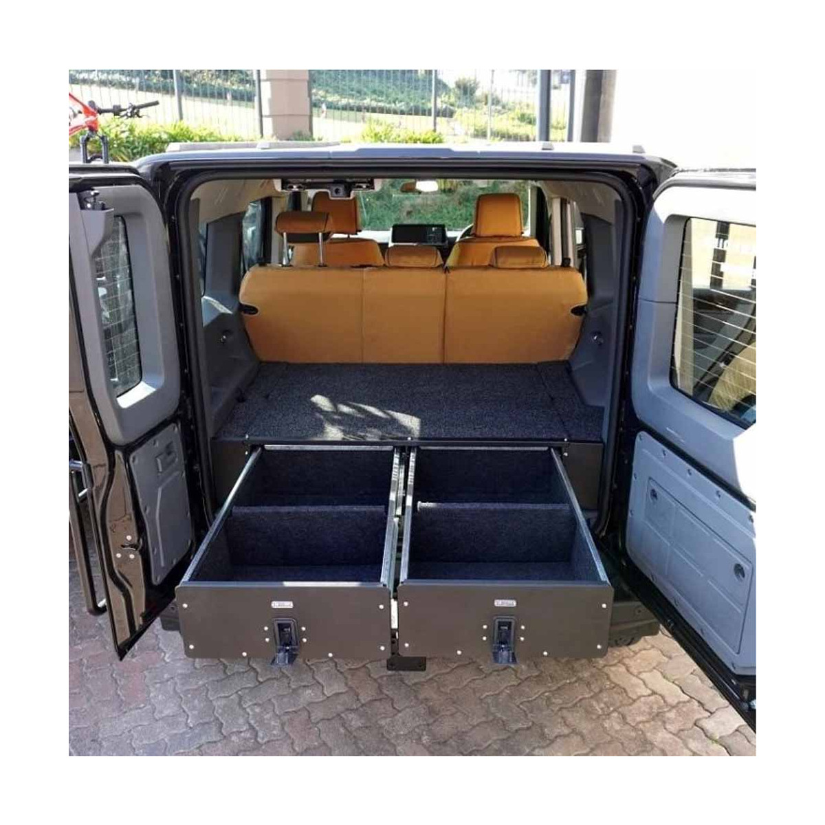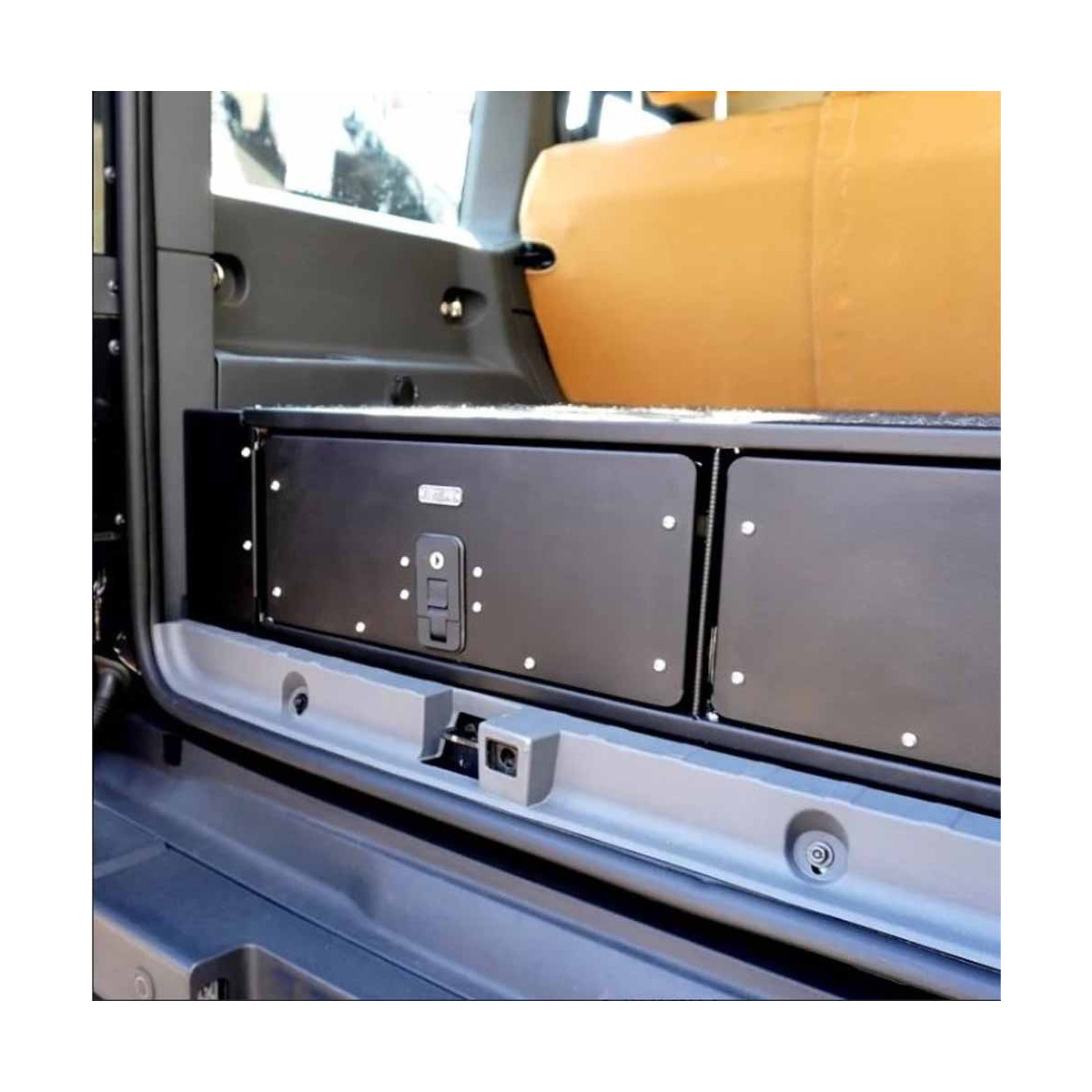 Les panneaux latéraux amovibles s'adaptent parfaitement à votre Grenadier, offrant un accès pratique à des espaces de rangement supplémentaires pour des équipements comme des compresseurs ou des batteries. Les tiroirs glissent sur des roulements scellés et peuvent supporter jusqu'à 150 kg chacun, avec un intérieur tapissé pour protéger vos effets personnels.