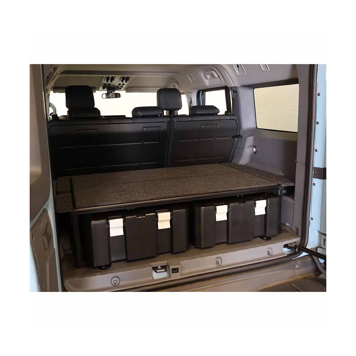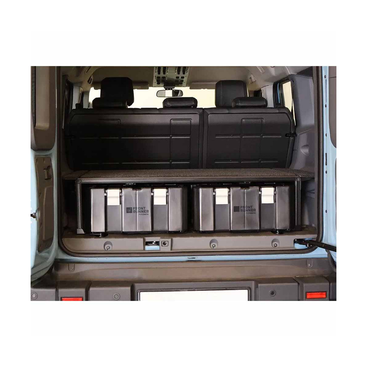 Pour une protection supplémentaire de vos objets fragiles, vous pouvez ajouter des séparateurs en mousse ou des boîtes Front Runner Flat Pack (vendus séparément). Le système de rangement est conçu pour maintenir vos boîtes Wolf Pack Pro en place, réduisant les vibrations et les mouvements excessifs grâce à un mécanisme à ressort. Le pont supérieur peut supporter jusqu'à 80 kg et peut être utilisé pour monter des glissières de réfrigérateur ou de cargaison Front Runner.