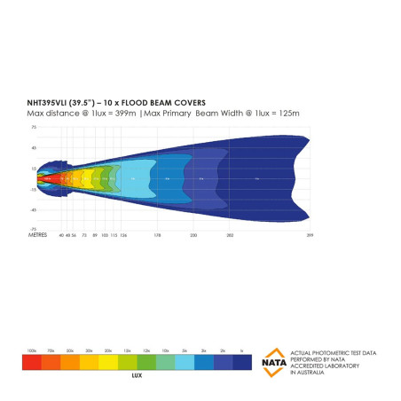 Portée @ 1 lux | Sans cache : 902 m (L) / 61 m (l) Spot : 844 m (L) / 48 m (l) Flood : 418 m (L) / 125 m (l) |