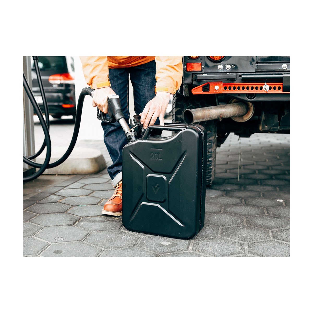 La meilleure qualité de jerrycan disponible sur le marché.Fabriqué en acier de 0,8 mm.Construction à double bac.Les coutures sont soudées pour une plus grande solidité.Configuration à trois poignées.Fermeture à baïonnette étanche.Goupille de verrouillage dans le couvercle.Charnière renforcée sur le couvercle pour éviter toute flexion accidentelle lors de la fermeture.Intérieur revêtu d'un émail résistant à l'essence pour éviter la rouille.Extérieur peint en noir.Pour faciliter le versement, il est recommandé d'utiliser JCFU006. *vendu séparémentSe range bien dans le JCHO013 ou le JCHO014 de Front Runner *vendu séparémentRemarque : ce jerrycan n'est pas conçu pour transporter de l'eau. Pour une solution d'eau, veuillez utiliser WTAN073 ou WTAN070.