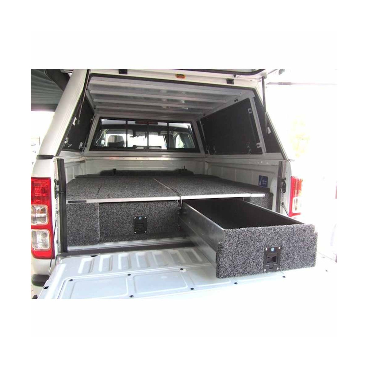 Transformez l'intérieur de votre Ford Ranger T6 Double Cabine avec le système de rangement Big Country, spécialement conçu pour les défis du tout-terrain. Fabriqué en Afrique du Sud, ce système utilise du métal galvanisé pour garantir une durabilité exceptionnelle dans les environnements les plus difficiles. Chaque tiroir peut supporter jusqu'à 200 kg et est équipé de roulements à billes étanches pour une ouverture et fermeture sans effort. Idéal pour ranger des équipements lourds et volumineux, ce système comprend également un plateau supérieur extensible pour faciliter l'installation d'appareils tels que des réfrigérateurs. Avec ses panneaux latéraux amovibles pour un accès facile et des serrures à clé pour la sécurité, ce système de rangement est un investissement indispensable pour l'exploration off-road.