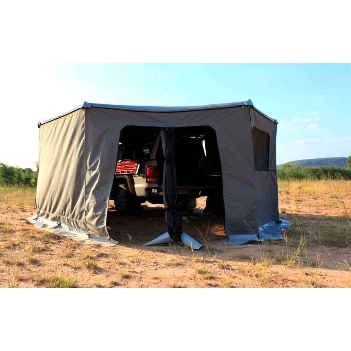De Quick Pitch zijwandset is ontworpen om uw luifel om te toveren in een gesloten en comfortabele ruimte, perfect voor elk outdoor avontuur. Eenvoudig te installeren, deze set is voorzien van robuuste ritsen voor een snelle en eenvoudige montage door één persoon. Het bevat vijf wanden—twee met ramen en één met dubbele deur—alle voorzien van muggennetten voor optimale bescherming tegen insecten. Het doek van de set is waterbestendig en bevat een PVC rand van 400mm die effectief regenwater afweert, terwijl het gemakkelijk schoon te maken is.
