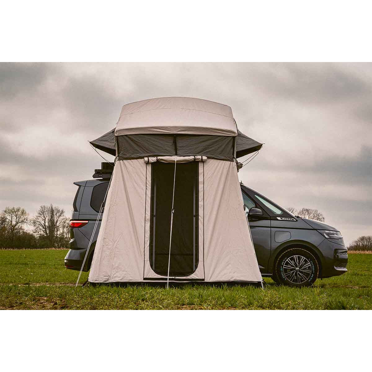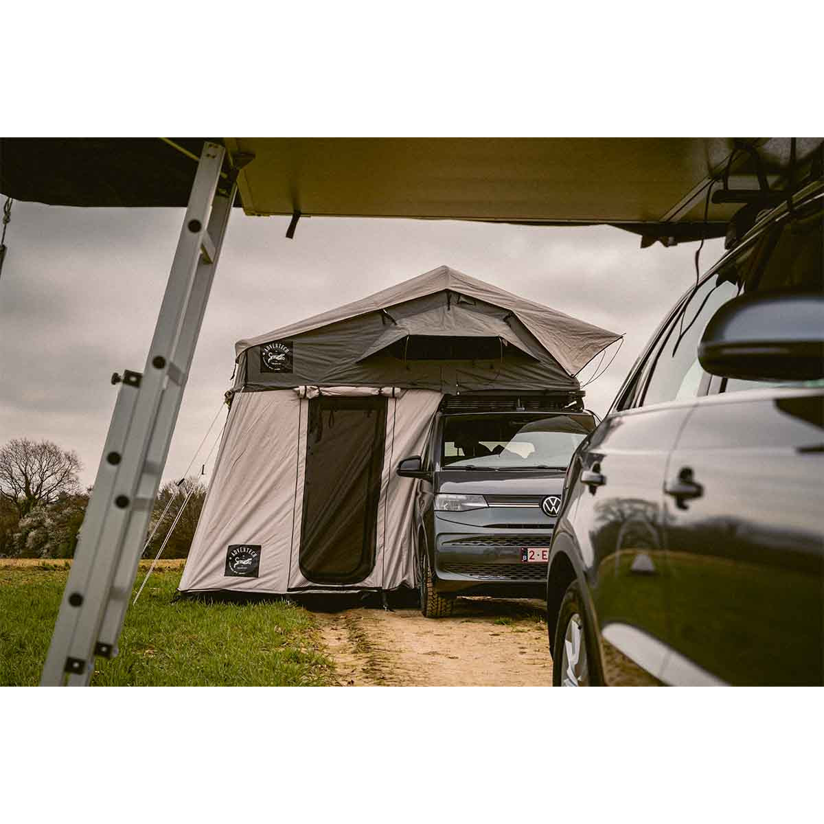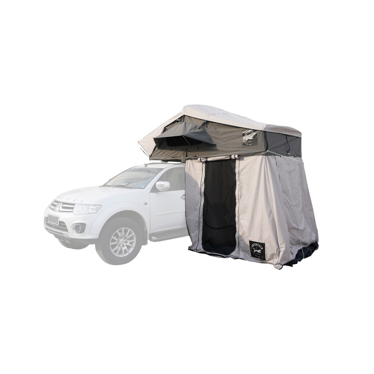 Transformeer je kampeerervaring met de Adventech Tourer 190 daktent annex, ontworpen om je leefruimte buiten uit te breiden in stijl en comfort.