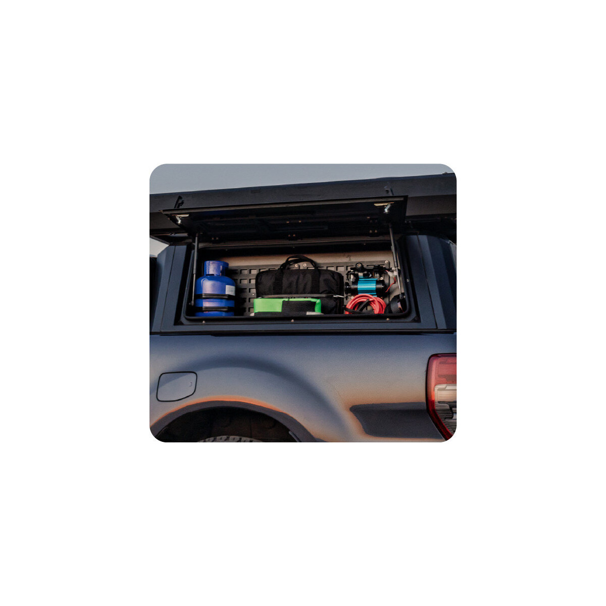 Améliorez la fonctionnalité de votre hardtop avec le bac de rangement. Fabriqué avec des matériaux de haute qualité, ce rangement robuste offre une protection supérieure contre les éléments, en plus d'ajouter un espace de rangement précieux à votre véhicule. Le bac de rangement est conçu pour s'adapter parfaitement à votre hardtop RSI Smartcap, mettant en valeur son style tout en améliorant ses capacités. Sa construction durable garantit une protection maximale contre les intempéries. Grâce à sa structure bien pensée, le bac de rangement pour hardtop RSI SMARTCAP augmente l'espace de chargement de votre pick-up, vous permettant de transporter plus de bagages et d'équipements. Que vous soyez en déplacement professionnel ou en overlanding, ce rangement vous permettra de transporter tout ce dont vous avez besoin.