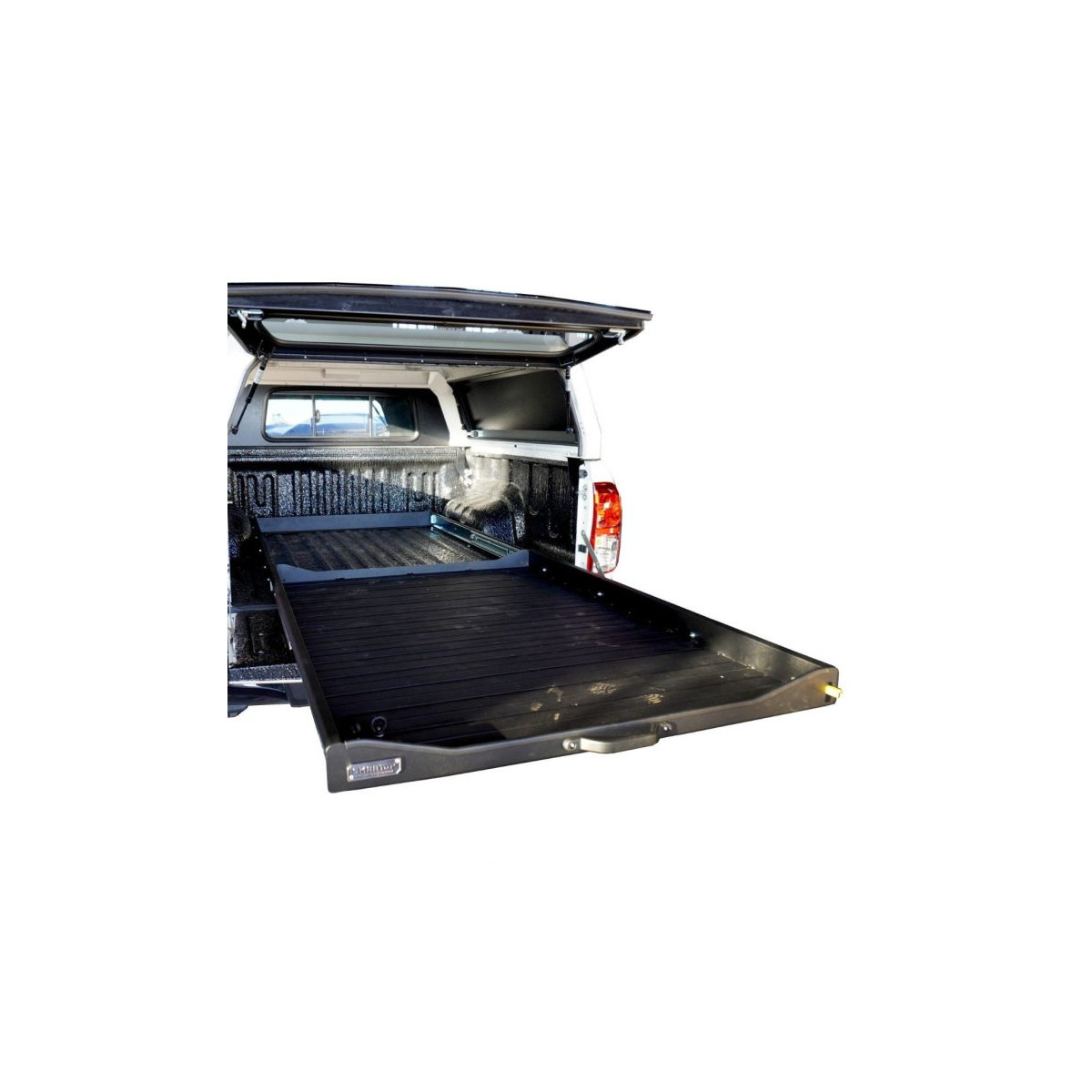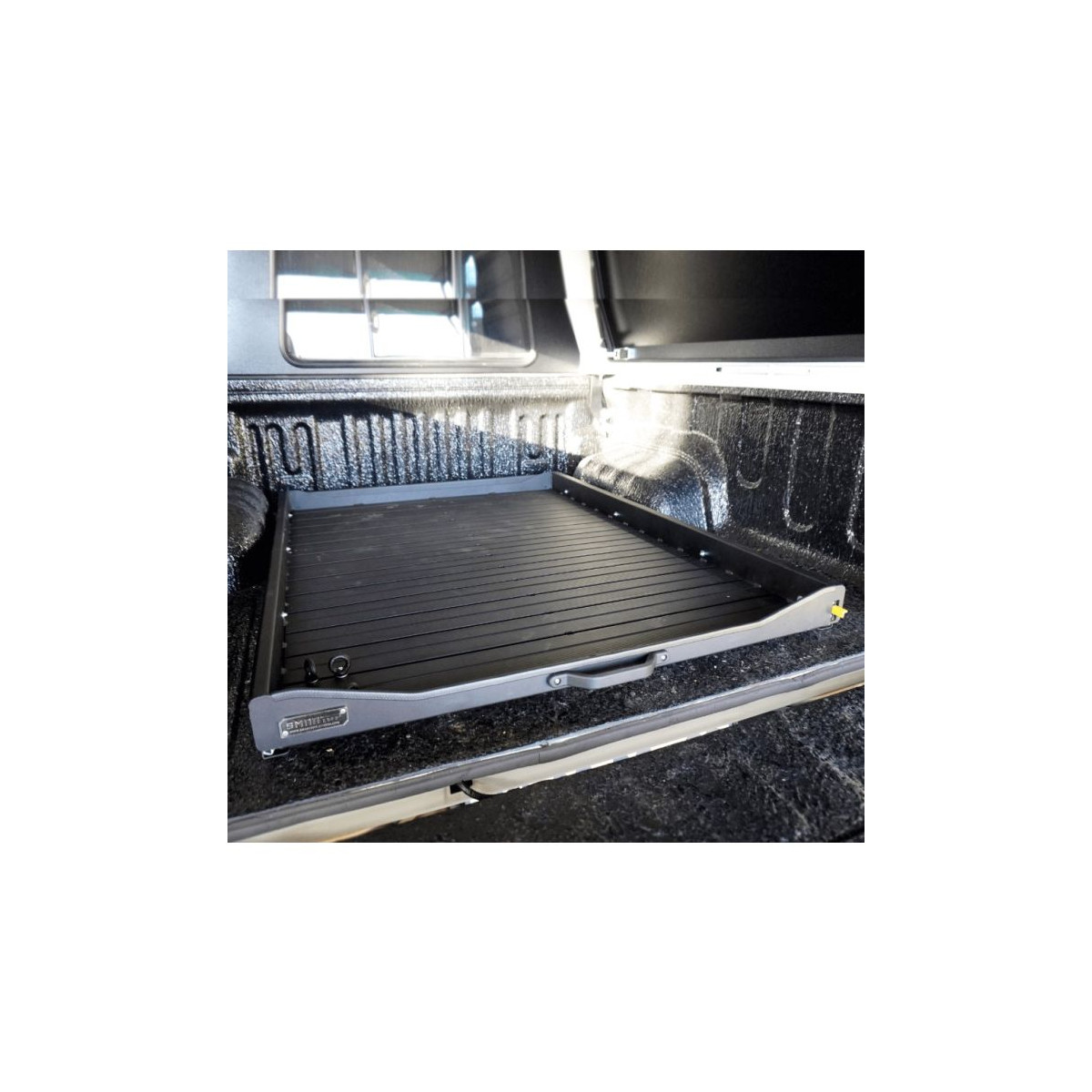 De Big Country Tour Slider transformeert uw laadruimte in een gemakkelijk toegankelijke werk- en opslagzone. Gemaakt van hoogwaardig aluminium, met uitzondering van de geleiders, biedt hij uitzonderlijke robuustheid en kan hij een lading tot 150 kg dragen. De basis van de schuiflade is voorzien van sleuven vergelijkbaar met laadstangen, waardoor het eenvoudig is om verschillende uitrustingen vast te zetten met standaard M8-bouten. Dit systeem kan direct in de laadbak tussen de wielkasten worden gemonteerd of op een bestaand ladesysteem worden geplaatst. Het vergrendelt in zowel open als gesloten positie, wat zorgt voor veilig en praktisch gebruik tijdens uw outdoor avonturen.