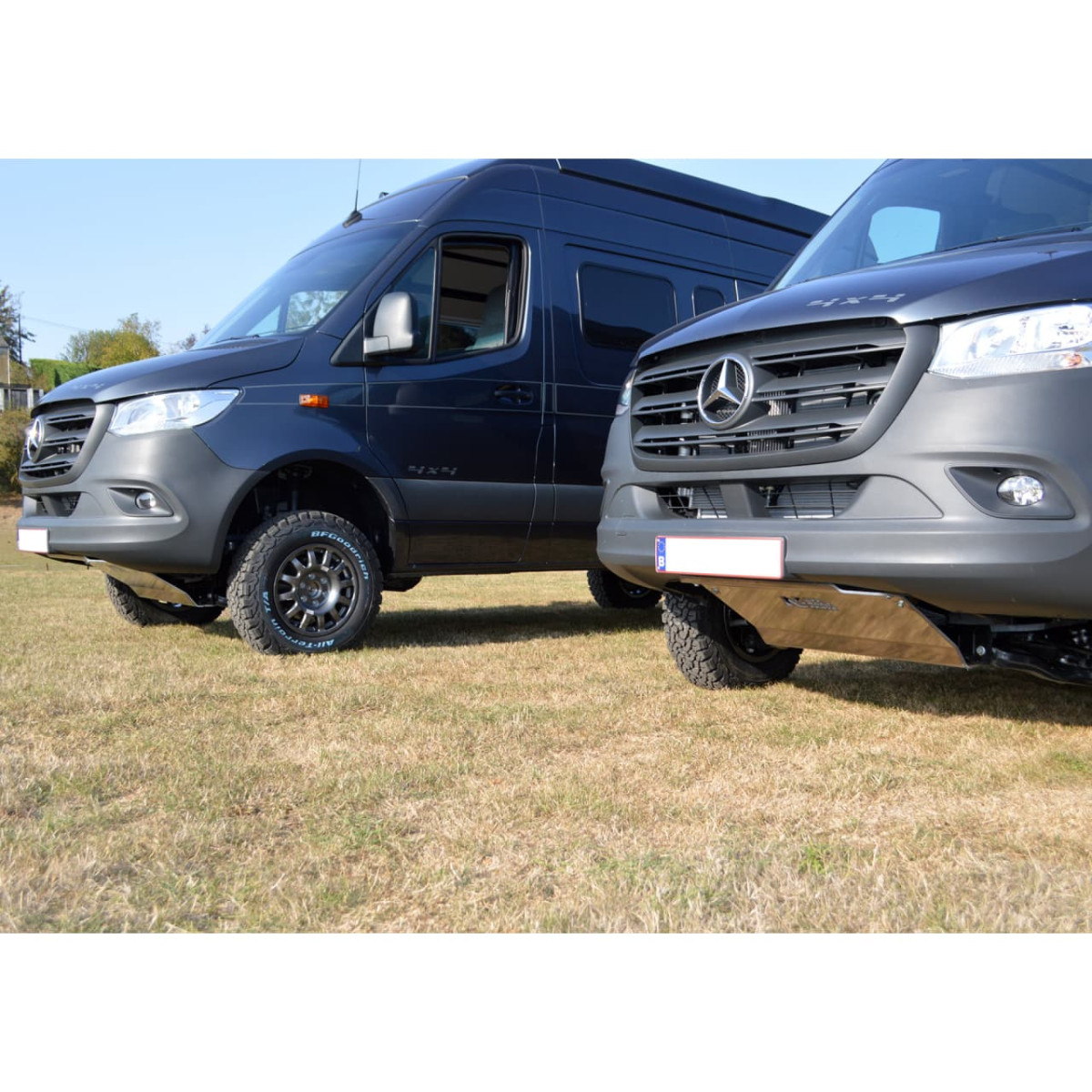 Trotseer de meest ruige terreinen met een gerust hart dankzij de N4-Offroad voorskidplate, speciaal ontwikkeld voor de Mercedes Sprinter 4x4 (W906 en W907, alle motorisaties). Gemaakt van hoogwaardig aluminium met een dikte van 8 mm, biedt deze motorbeschermplaat maximale bescherming voor de vitale mechanische onderdelen tussen de bumper en het voorste subframe.