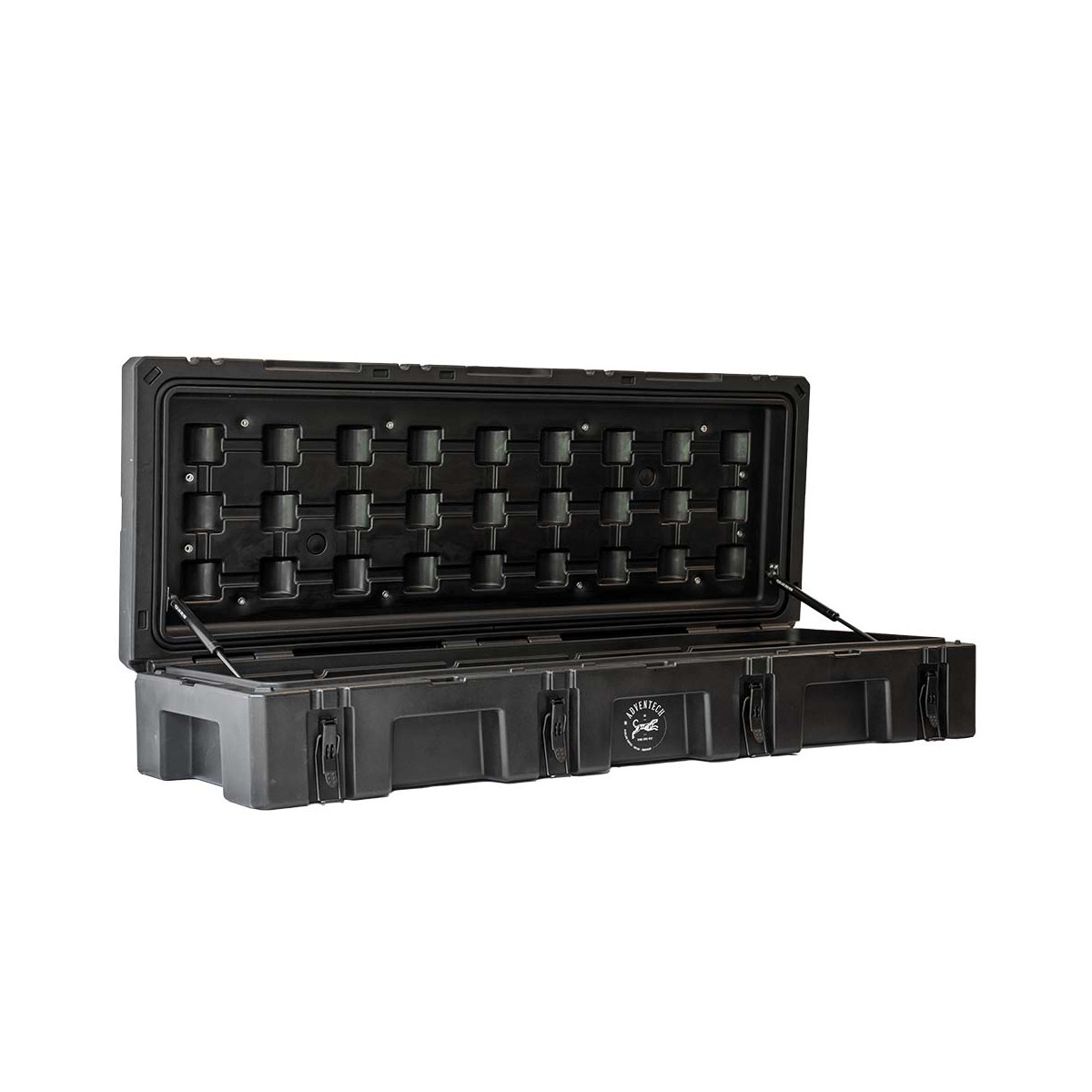 De Adventech 102L lage profiel transportkist is speciaal ontworpen voor 4x4-liefhebbers en buitenavonturiers die op zoek zijn naar een praktische en robuuste opslagoplossing. Met een hoogte van slechts 24 cm past deze kist perfect onder de uitrusting van uw voertuig, terwijl hij een capaciteit van 102 liter biedt. Gemaakt van hoogwaardig polypropyleen, is deze kist onvervormbaar en bestand tegen schokken, zuren en oliën. Een rubberen afdichting garandeert volledige water- en stofdichtheid, terwijl de aftapplug het schoonmaken vergemakkelijkt en het gebruik als waterreservoir mogelijk maakt. De versterkte sluitingen zijn vergrendelbaar met een hangslot, waardoor de veiligheid van uw spullen wordt gegarandeerd. De anti-trillingshandgrepen en de sleuven voor het vastsjorren van de kist zorgen voor een gemakkelijke en veilige transport, zelfs onder de meest extreme omstandigheden. Dankzij het stapelbare ontwerp kan deze kist gemakkelijk worden opgeborgen, waardoor de ruimte in uw voertuig wordt geoptimaliseerd.