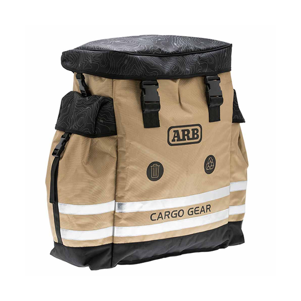 De ARB 4×4 TrackPack Series II is een rugzak van 70 liter die is ontworpen om op het reservewiel van uw voertuig te bevestigen. Perfect voor het vervoeren van afval, lichte bergingsuitrusting of andere materialen dankzij het interne scheidingsstuk en de twee zijvakken. Gemaakt van robuust nylon, de binnenkant is van rubber en de bodem is van gaas voor drainage en gemakkelijk schoonmaken. Het hoofdcompartiment van 60 liter kan worden verdeeld in twee compartimenten van elk 30 liter. De bovenkant sluit met een oprolontwerp en Fastex-gespen om water buiten te houden. De twee zijvakken van elk 4,5 liter hebben oogjes voor drainage. Nylon banden in autogordelstijl versterken de tas om scheuren te voorkomen. De materialen zijn UV-bestendig en twee reflecterende strips verhogen de zichtbaarheid in het donker. Een extra anti-doorhangband voorkomt dat de tas verschuift.