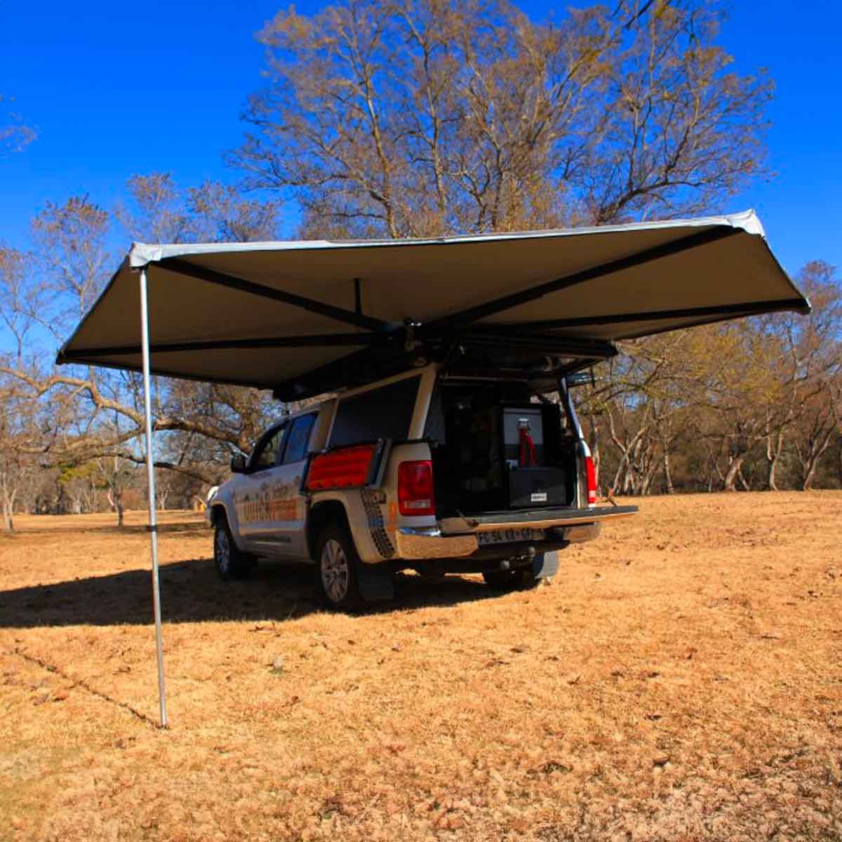 Snel uitklapbare QuickPitch 270° luifel, ideaal voor 4x4 avonturiers en natuurcamping.