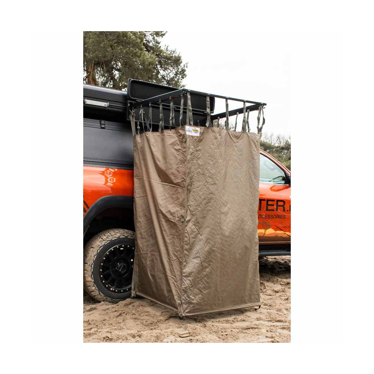 De Quick Pitch Quick-en-Suite Box is de ultieme oplossing voor kampeer- en overlandingliefhebbers die op zoek zijn naar privacy en comfort. Ontworpen door Quick Pitch, onderscheidt deze douche- en privacycabine zich door zijn robuustheid en gebruiksgemak. Gemaakt van gegalvaniseerd aluminium met een poedercoating, roest hij nooit en garandeert een lange levensduur, zelfs onder de meest zware omstandigheden.