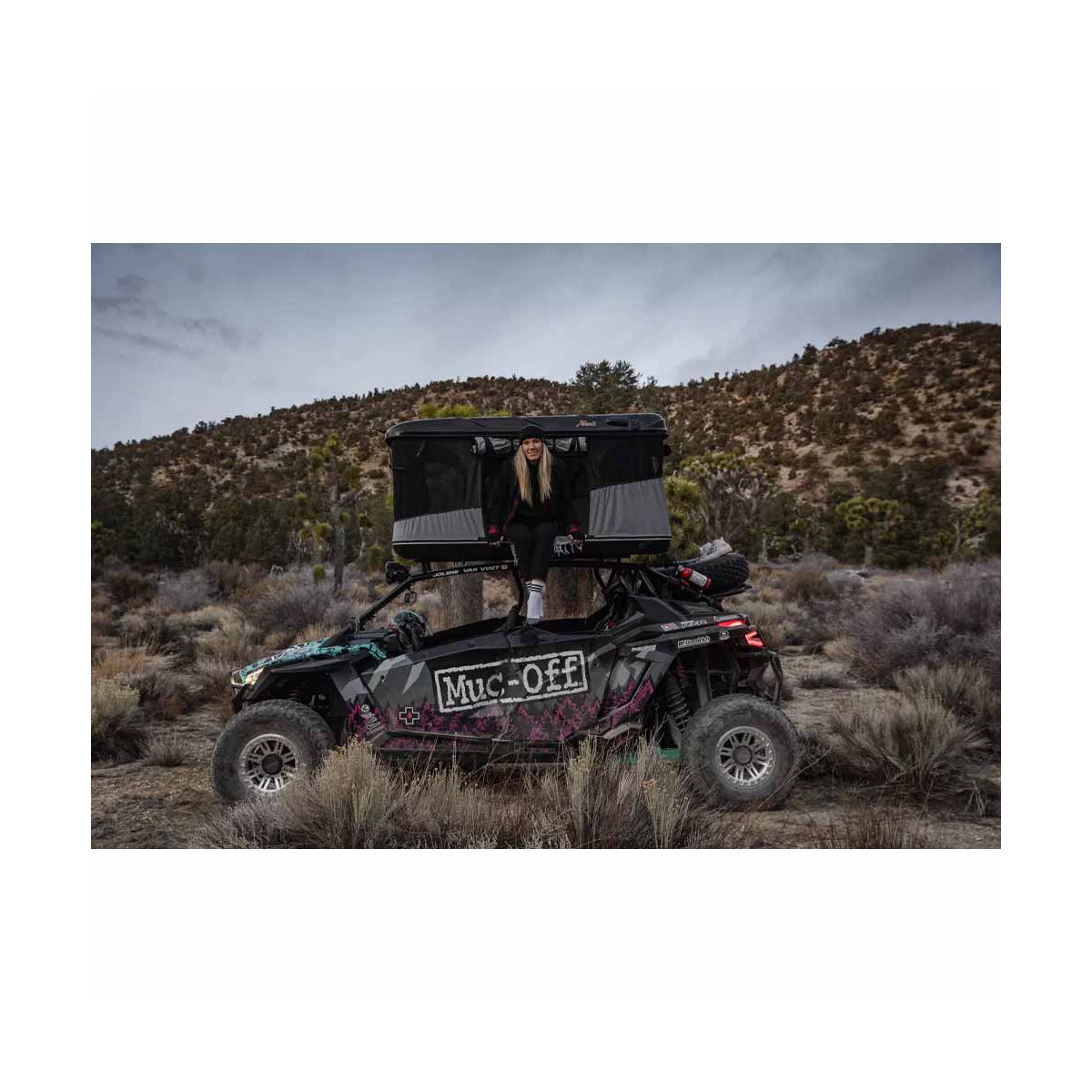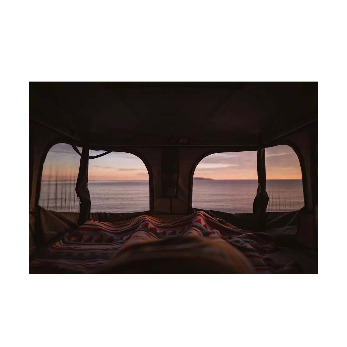De James Baroud Evasion M Black is de ideale oplossing voor avonturiers die op zoek zijn naar comfort en betrouwbaarheid. Ontworpen om plaats te bieden aan maximaal vier personen, is deze robuuste daktent perfect voor gezinnen of koppels die gepassioneerd zijn door buitenavonturen. Met zijn versterkte glasvezel schaal en waterdichte stof van hoge kwaliteit, biedt de Evasion M Black maximale bescherming tegen de elementen, of het nu gaat om stortregen, sneeuwstormen of zonnige dagen dankzij de geïntegreerde UV-bescherming. Geniet van een panoramisch uitzicht van 360° en een ongeëvenaard comfort met een 65 mm dik hoogwaardig schuimmatras. Eenvoudig te installeren in minder dan een minuut, deze tent belooft een herstellende nachtrust en een compromisloos avontuur.