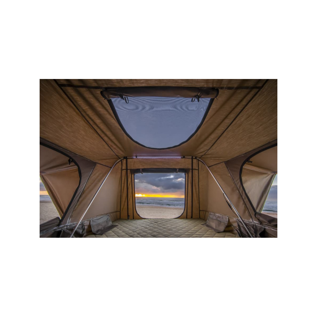 Het ruime interieur biedt voldoende slaapruimte voor twee volwassenen en een kind, ideaal voor ontspannen nachten onder de sterren. Daarnaast verbeteren functies zoals LED-verlichting binnen en buiten, ingebouwde USB-aansluitingen en een comfortabel matras met wasbare hoes je kampeerervaring.