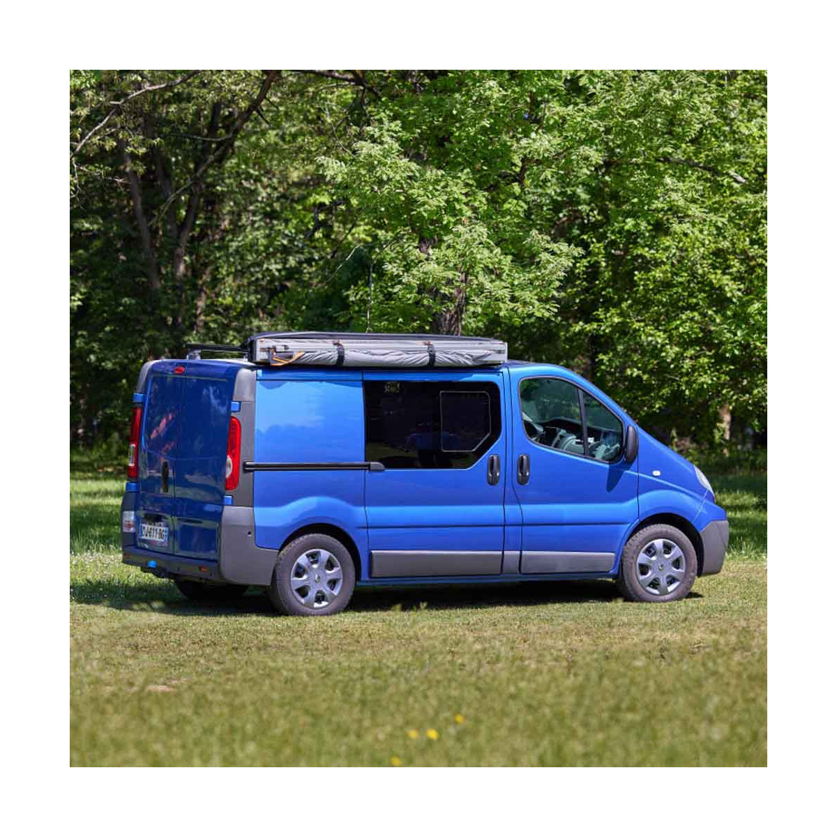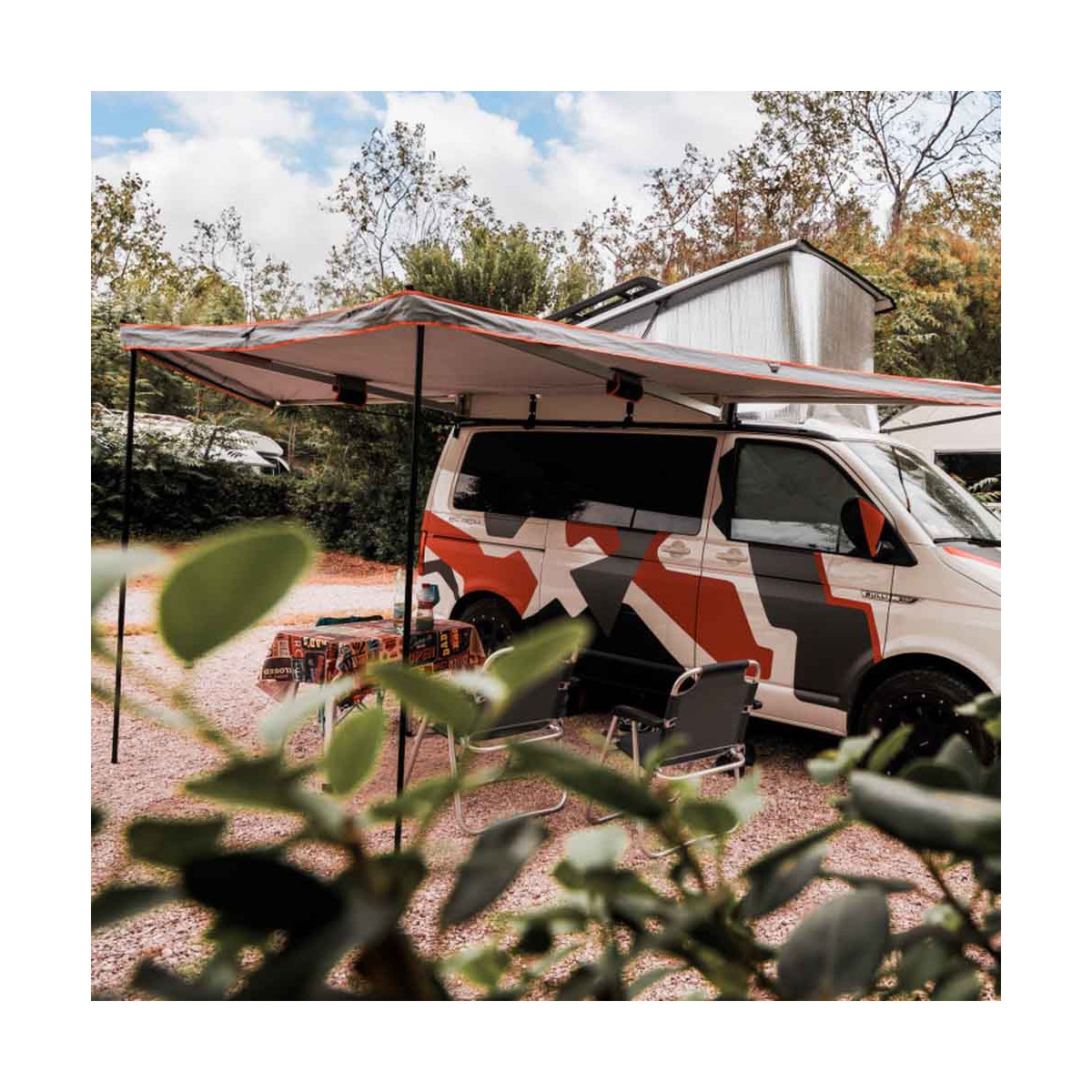 De Rockalu 360° is een innovatieve vrijstaande luifel ontworpen om bescherming en onderdak te bieden tegen slecht weer en zon. Gemaakt van UV-bestendig doek en robuuste materialen, is deze luifel klaar om de meest extreme weersomstandigheden te trotseren. Hij kan zowel aan de linker- als aan de rechterkant van het voertuig worden geïnstalleerd, wat maximale flexibiliteit biedt voor de gebruikers.