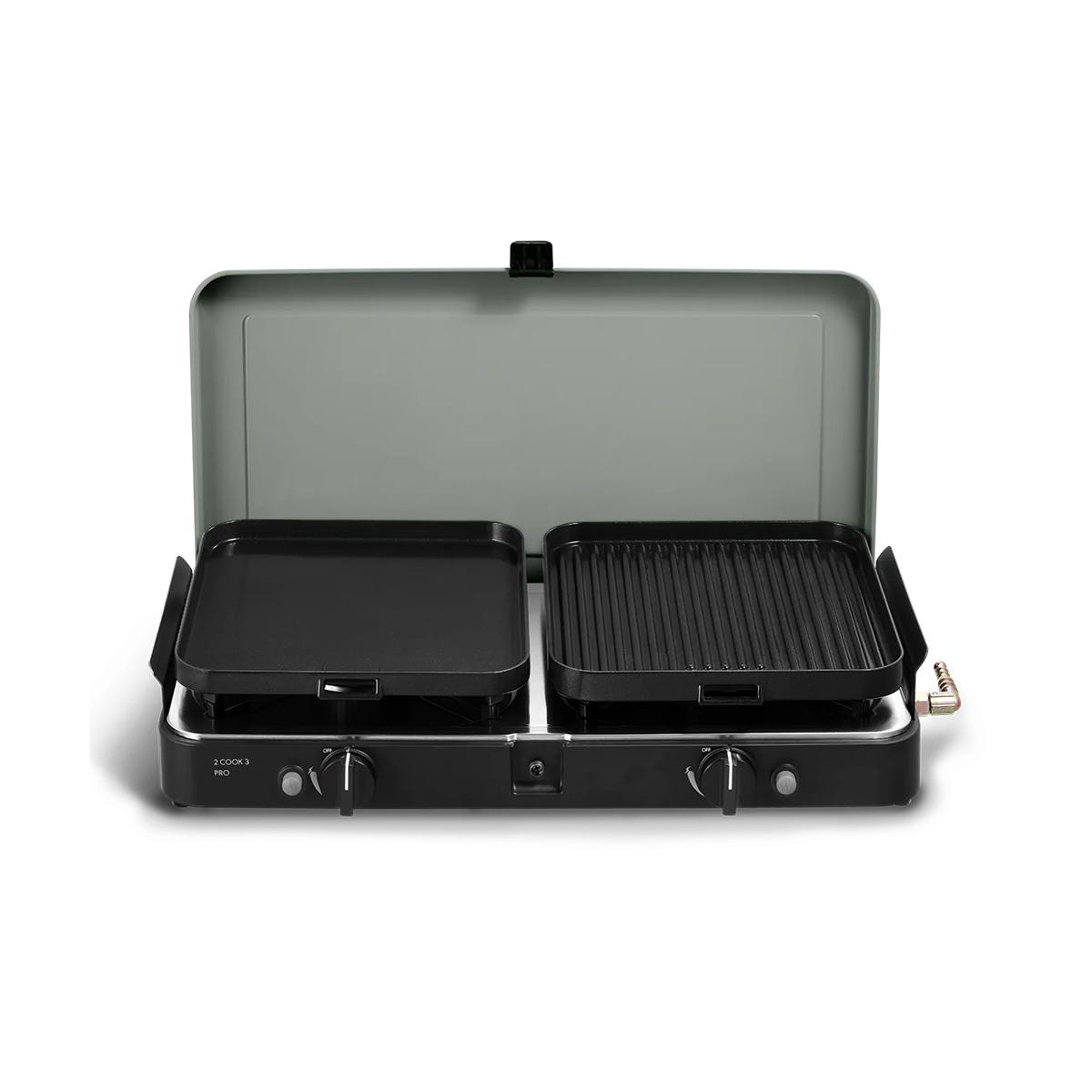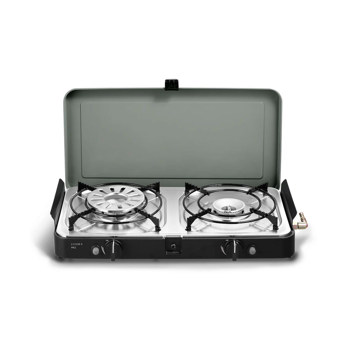 De 2 COOK 3 PRO DELUXE is gemaakt van robuuste materialen zoals nylon en roestvrij staal om bestand te zijn tegen de elementen en een optimale duurzaamheid te garanderen.