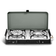 Deze lichtgewicht, stijlvolle gasbarbecue heeft twee onafhankelijke branders. Elke brander heeft een verwisselbaar gegoten aluminium, een platte grill met antiaanbaklaag (GreenGrill) en een bakplaat. Bovendien wordt het geleverd met twee pannendragers, een koffiepothouder en een draagtas. Het is ideaal voor alles, van kamperen en reizen in een busje tot koken op een tafel tijdens een avontuur.