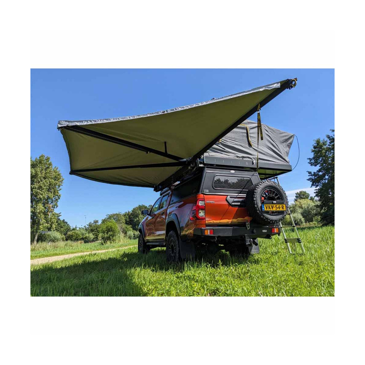 De Quick Pitch 180° Weathershade Luifel is een uitzonderlijke innovatie op het gebied van voetloze luifels, die ongeëvenaarde bescherming biedt tegen zon en slecht weer. Dankzij het ingenieuze ontwerp past hij perfect op verschillende voertuigen zoals SUV's, caravans en aanhangers. Geïnspireerd door het populaire model Quick Pitch Weathershade 20 Second, onderscheidt deze 2,6 meter lange luifel zich door zijn robuuste constructie en compacte inklapmechanisme, waardoor de breedte slechts 130 mm is ter hoogte van het scharnier. Dit maakt hem uiterst praktisch om te vervoeren en uit te klappen tijdens uw buitenavonturen.