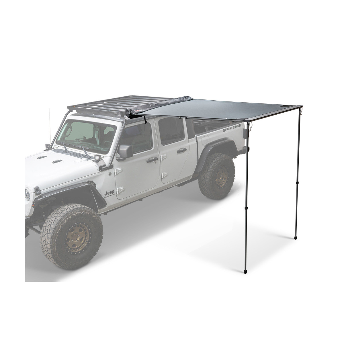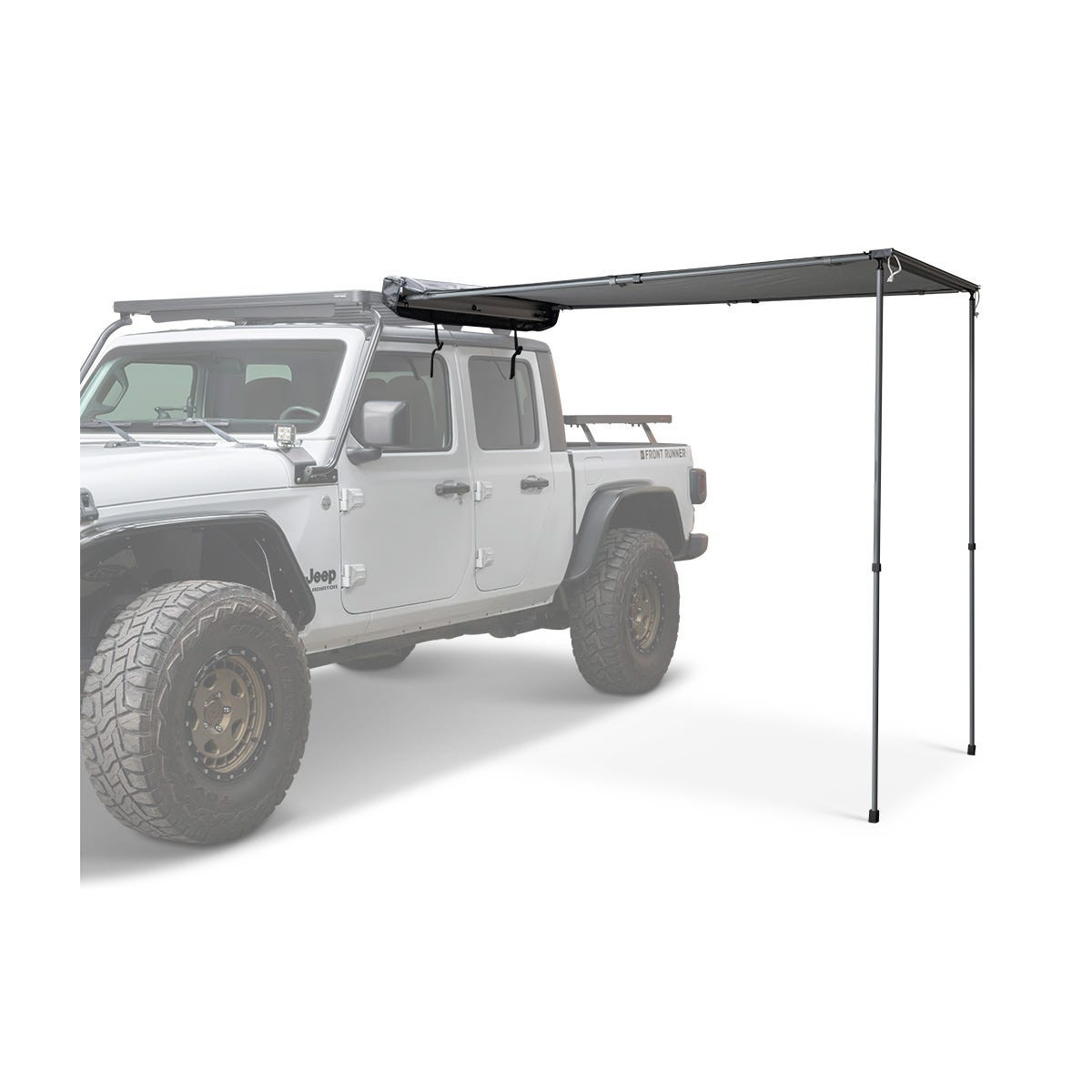 Snelle en eenvoudige installatie voor twee personen, in minder dan 60 seconden.Snel en eenvoudig te monteren aan de zijkant van je Front Runner dakdrager voor directe bescherming tegen zon of regen.De waterafstotende, UV-bestendige luifel is 2 m/6,6 ft breed en steekt 2,1 m/6,9 ft uit vanaf de montage-extrusie.Lichtgewicht, maar toch duurzame, verticale steunpalen hebben spikes aan het uiteinde voor een veilige plaatsing op de grond en strekken zich uit tot een maximale hoogte van 2,4 m/7,9 ft voor gebruik met grotere voertuigen.Telescopische aluminium twist-lock staanders en spanten en aluminium spanten die voor stevigheid zorgen.Inclusief reflecterende darmtouwen met tentharingen voor stabiliteit in winderige omstandigheden.Duurzame, heavy-duty PVC-gecoate 650 g nylon hoes beschermt je luifel tijdens het opbergen en tijdens het transport.Universeel bevestigingsmateriaal inbegrepen. Voor de beste montageresultaten op Front Runner Racks, upgrade naar de RRAC169 of RRAC029.Voeg extra zon-/regenbescherming toe aan de voor- of zijkant met AWNI038 of AWNI040.Verander elke luifel in een paar minuten in een schuilplaats door de TENT049 of TENT054 toe te voegen.Kan in de hoofddraagtas worden opgevouwen die permanent aan het voertuig kan worden bevestigd.Gebruik de 3 montagelussen om de LIGH179 vast te zetten om de ruimte onder de luifel te verlichten.