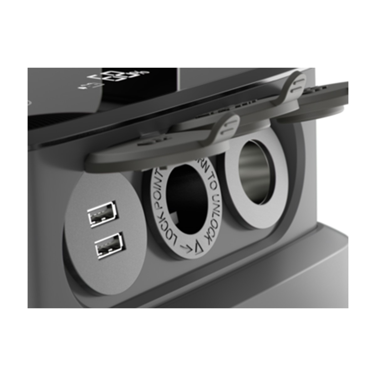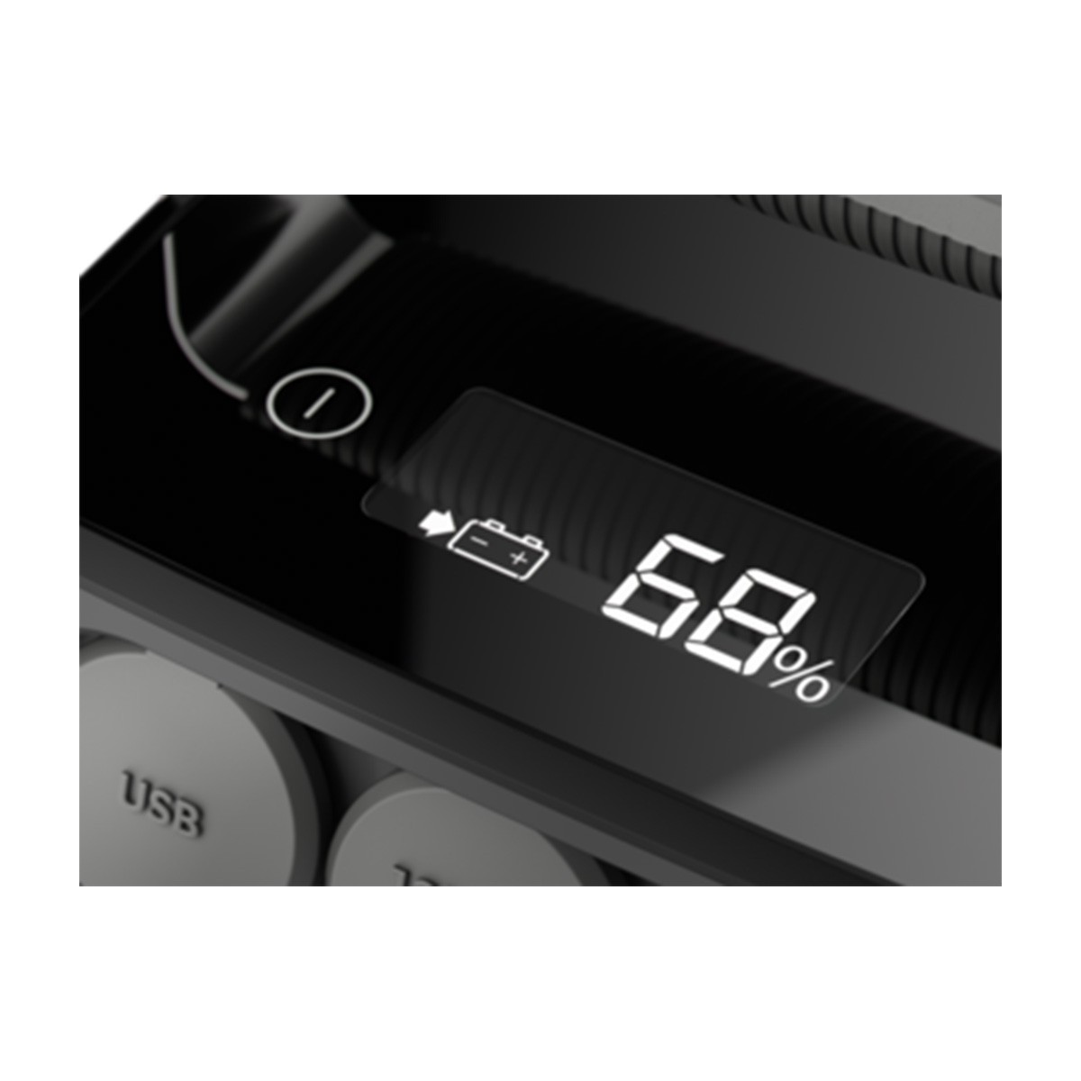 Het kan worden opgeladen via een 12 V aansluiting, een zonnepaneel of een AC-stopcontact.