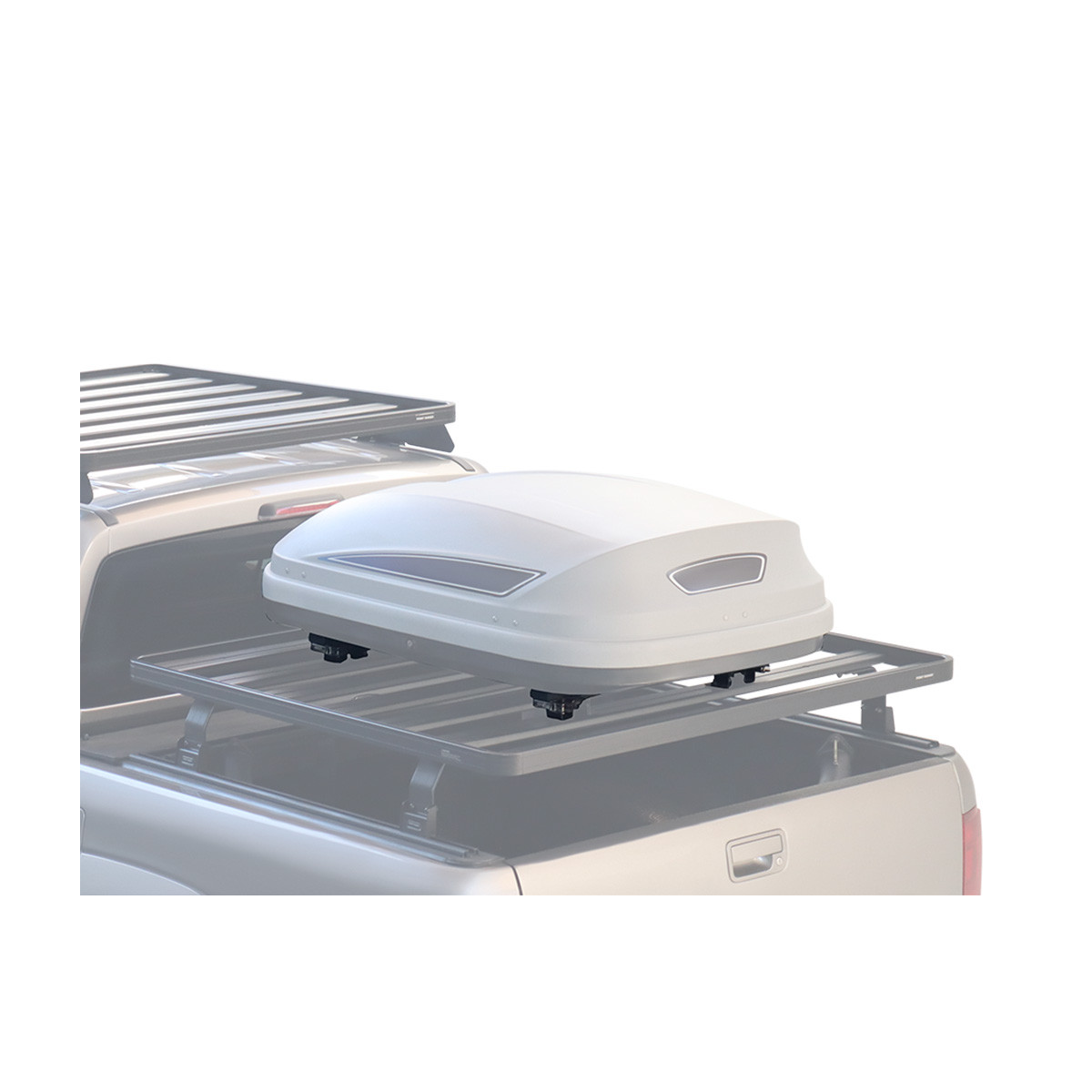 Zodra deze beugels op een Front Runner Rack zijn geïnstalleerd, is er geen gereedschap meer nodig om een dakkoffer te verwijderen of te installeren.
