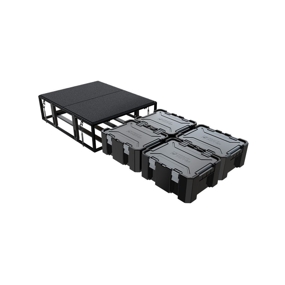 De Wolf Pack Pro / smal opslagsysteem kit is ontworpen om de ruimte in uw voertuig te optimaliseren, en biedt een efficiënte en stijlvolle opslagoplossing. Ideaal voor gebruik in het voertuig of in de laadbak van een pick-up met afdekking, het maakt het gemakkelijk om uw uitrusting op te slaan en te bereiken. Dit systeem bevat vier stapelbare, duurzame Wolf Pack Pro-boxen met geïntegreerde handgrepen voor gemakkelijke transport. Het bovenste plateau, bedekt met UV-bestendig nylon tapijt, kan tot 80 kg dragen, ideaal voor koelkast- of vrachtglijbanen.