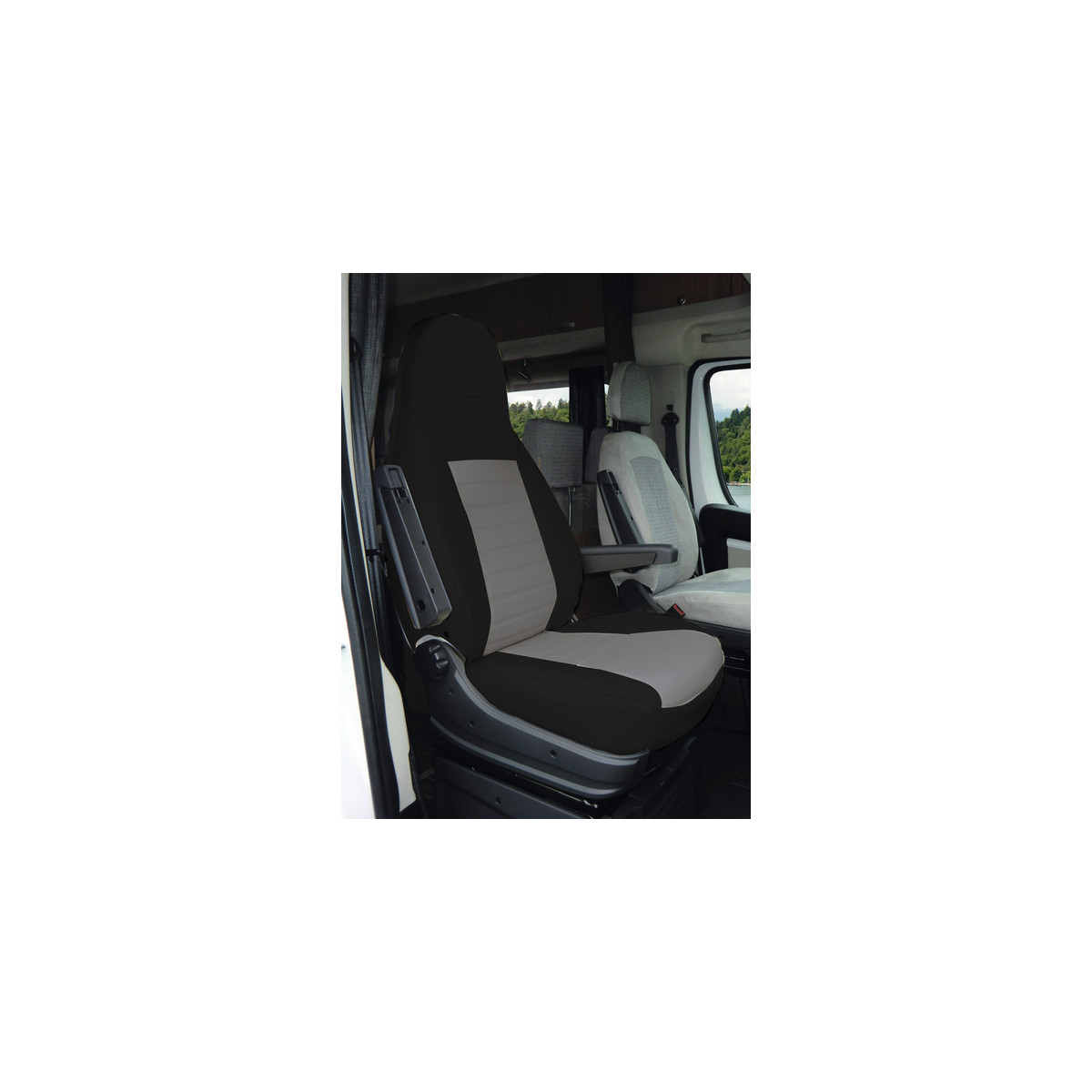 Bescherm uw VW Transporter T6.1 (2015+) camperstoelen met deze duurzame zwart/grijze hoes, voorzien van een schuimrubberen hoofdsteun en ritssluitingen op de rugleuning en zitting.